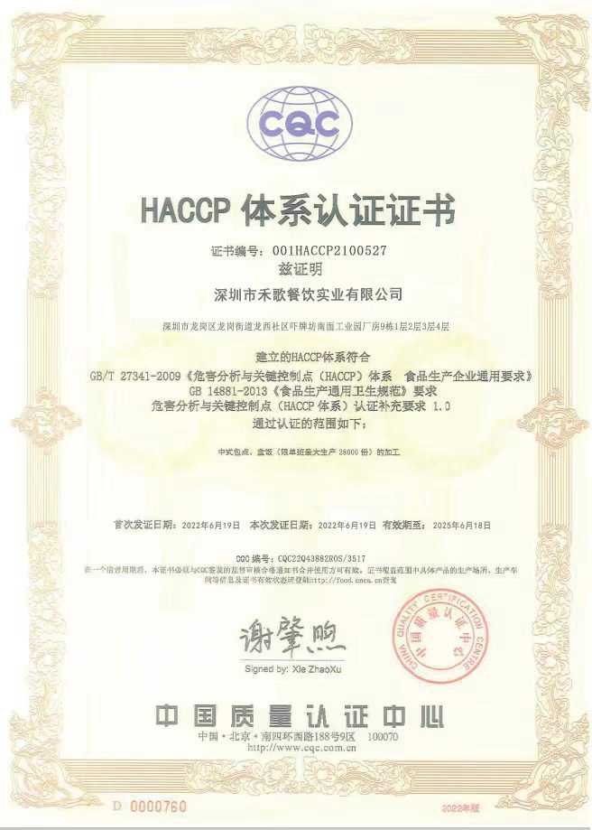 深圳市禾歌餐饮实业有限公司成立于2021年,公司注册资金5000万元,位于龙岗区盐龙大道旁恒泰润科创园,交通便利,是一家生产设备先进,管理规范,品质保证的餐饮配送专业公司,公司设有董事会、监事会,董事长办公室、总经理办公室等机构及运营部、生产部、策划部、人事部、财务部、采购部、保安部、后勤部、职业培训中心、菜谱研发中心、食品检测化验室、智能监控中心等部门,并设有党员活动室。现有企业员工150多人,其中研究生学历的2人,本科学历26人,大专学历35人,具有相关职称15人,营养师2人。
