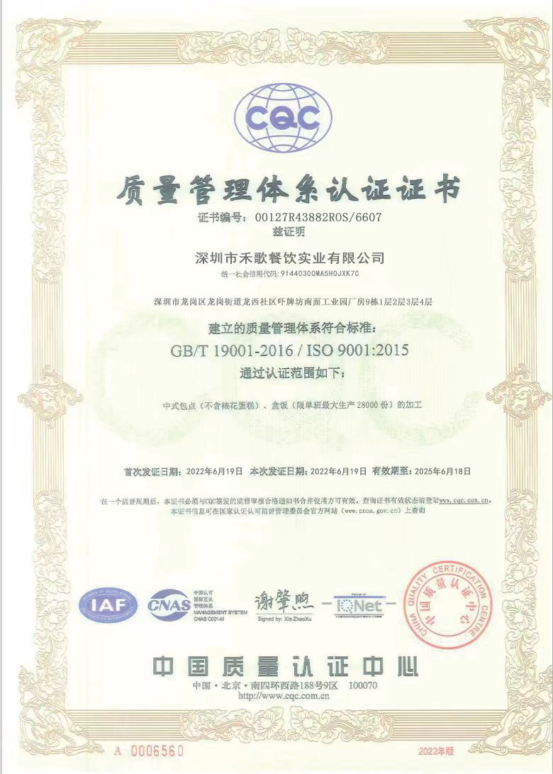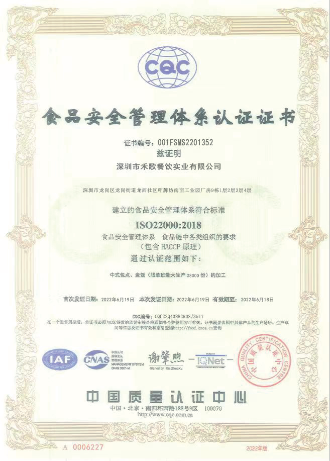 深圳市禾歌餐饮实业有限公司成立于2021年,公司注册资金5000万元,位于龙岗区盐龙大道旁恒泰润科创园,交通便利,是一家生产设备先进,管理规范,品质保证的餐饮配送专业公司,公司设有董事会、监事会,董事长办公室、总经理办公室等机构及运营部、生产部、策划部、人事部、财务部、采购部、保安部、后勤部、职业培训中心、菜谱研发中心、食品检测化验室、智能监控中心等部门,并设有党员活动室。现有企业员工150多人,其中研究生学历的2人,本科学历26人,大专学历35人,具有相关职称15人,营养师2人。